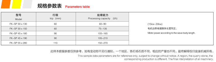 FK-SP平面往復篩是我公司自行研制的一種新產品,本產品具有結構簡單、性能可靠、篩分能力大、經濟實用、可直接安裝在錘式破碎機的底部,物料可直接進入平篩進行自動分離、不用傳送帶傳送,可以將物料分篩出5種以上規格,低電耗和低維修費用。是分篩設備中結構最簡單、最實用的篩分設備。